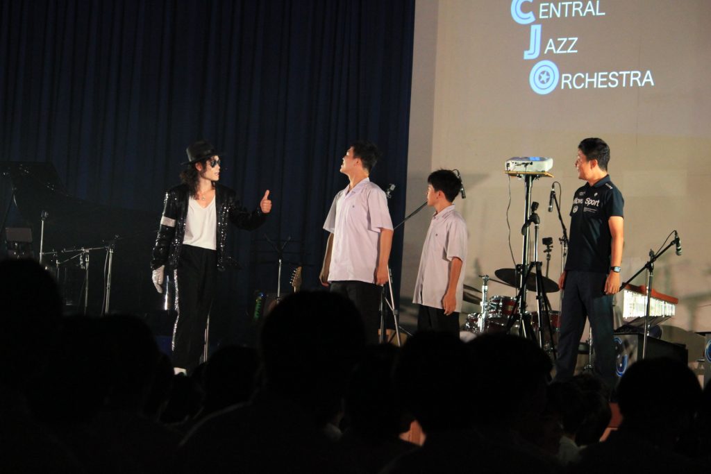 1年生/2年生/3年生/お知らせ/学校生活 本校創立50周年記念事業との共催で芸能鑑賞会を実施しました! 2025年11月6日 10月11日(土)、本校創立50周年記念事業との共催で芸能鑑賞会を実施しました。今年度は、セントラルジャズオーケストラ9人編成&Wakasa(ジャズシンガー)、ナタリー成田(鍵盤ハーモニカ奏者)、マイケルジャクトン(パフォーマー)による演奏やパフォーマンスを鑑賞しました。生徒はプロの演奏やパフォーマンスの魅力に触れ、貴重な体験をすることができました。