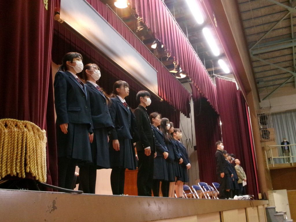 12月8日(月)には、壮行会を開催しました。顧問の先生から大会参加までの道のりや、大会概要の説明があり、校長先生からの激励の言葉に続き、部長から大会に向けた決意が全校生徒の皆さんに伝えられました。