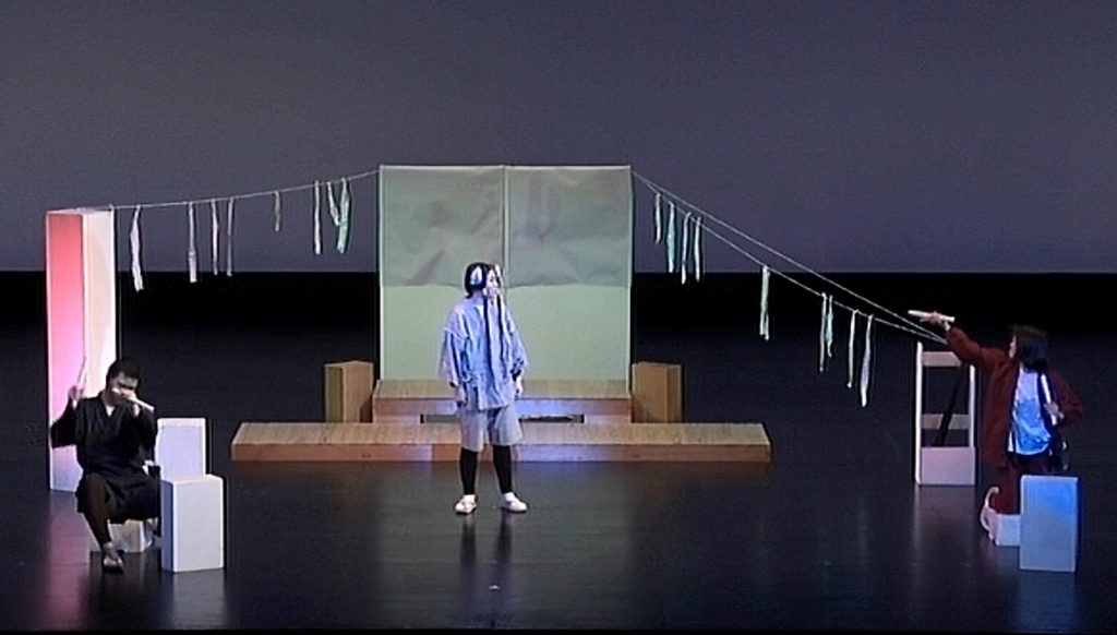 中部大会後の1か月という短い準備期間ではありましたが、脚本の良さだけでなく、衣装メイク、舞台装置、照明、音響、役作りも効果的で作品に合っていた、と講評を得ました。