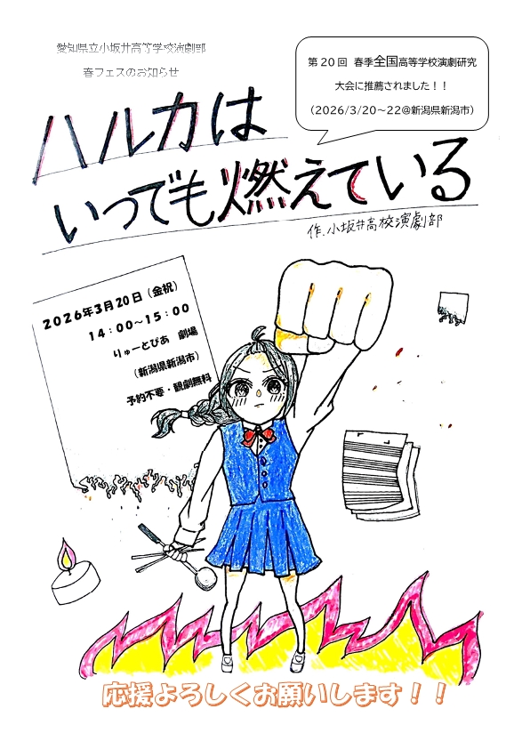 【演劇部】第20回春季全国高等学校演劇研究大会(フェスティバル2026)の上演日等が決定しました!